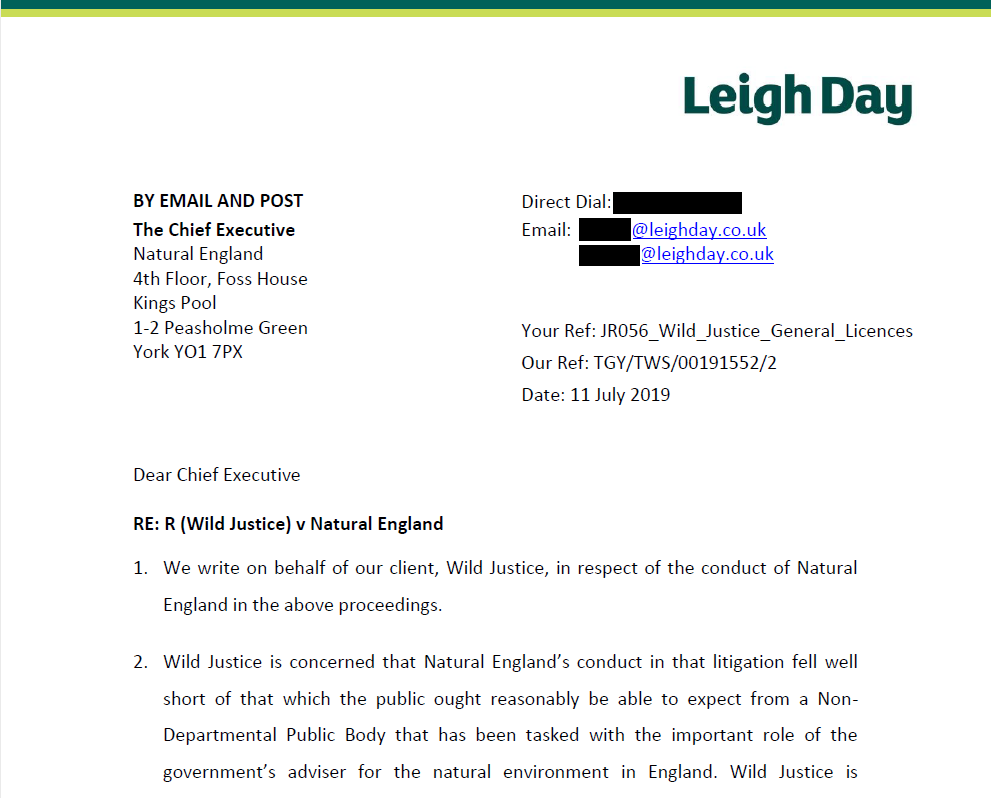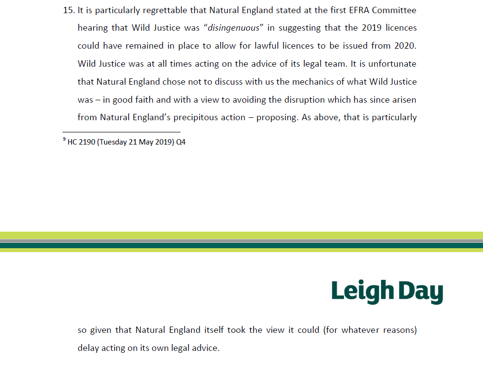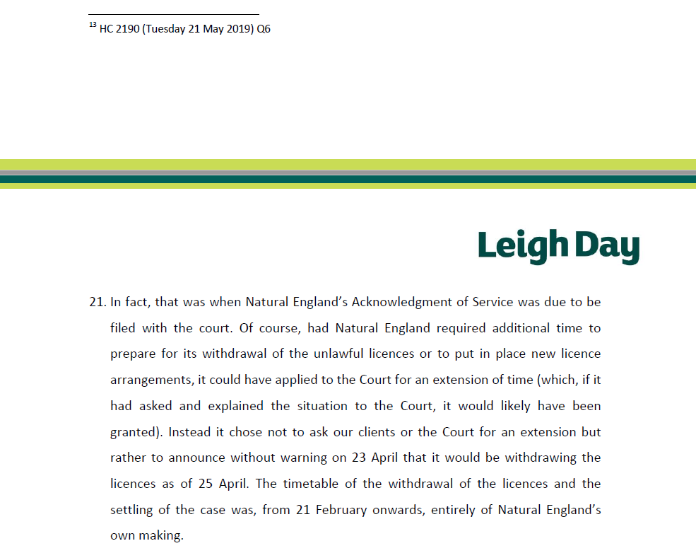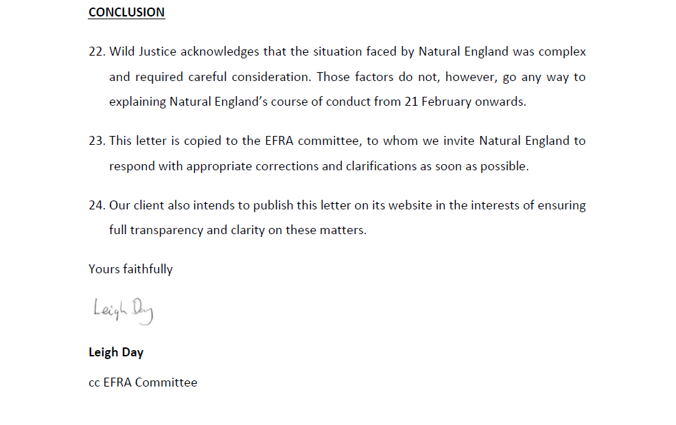 This letter was sent to Natural England yesterday and copied to the EFRA Committee.