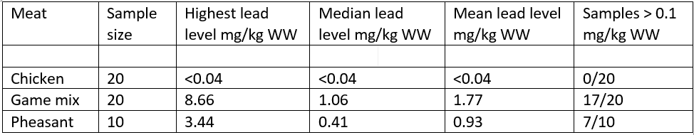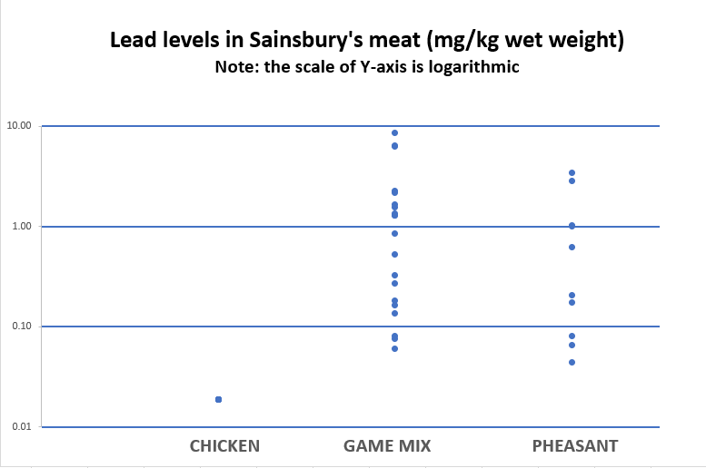 No lead shot was found in any of the samples, consistent with Sainsbury’s saying that lead shot are removed. However, what were the lead levels?