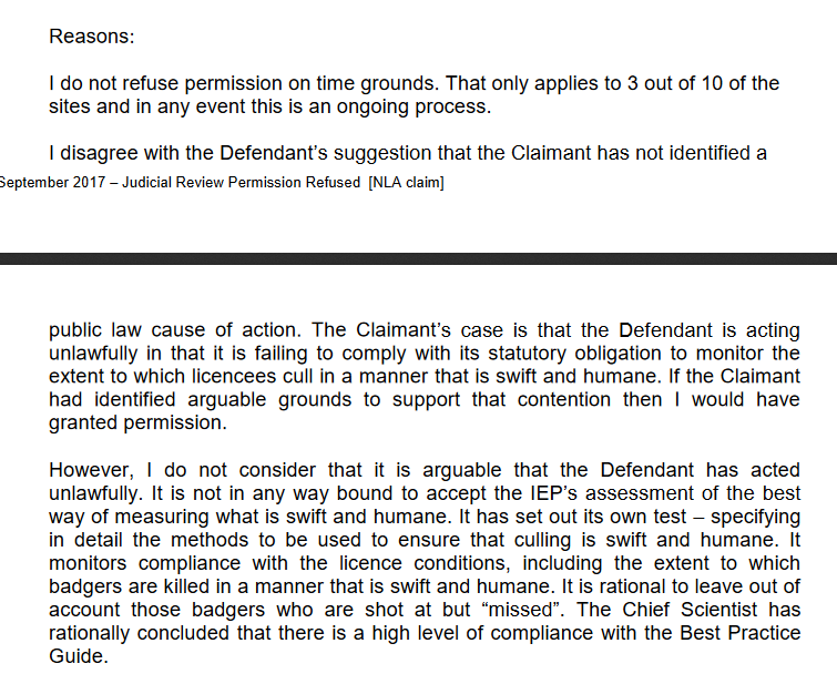 Yesterday evening we heard that we have been refused permission for judicial review of Natural England’s licensing of Badger shooting. This is a grave disappointment.