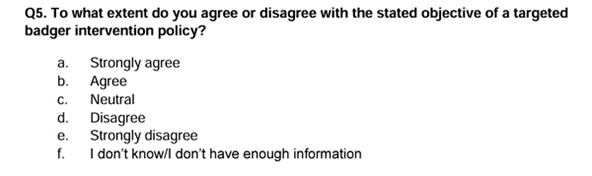 • We note that if a respondent doesn’t care much about Badgers and wants more culling, the Defra consultation is relatively easy to complete. This will create a massive bias in the responses gathered.