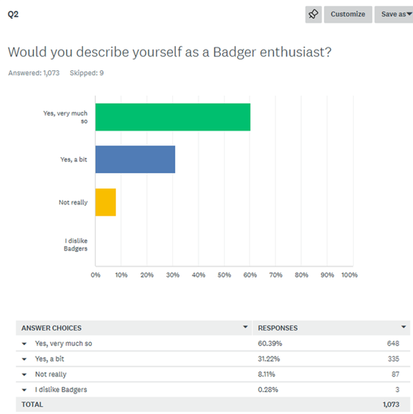 Question 2 – we asked whether you were keen on Badgers
