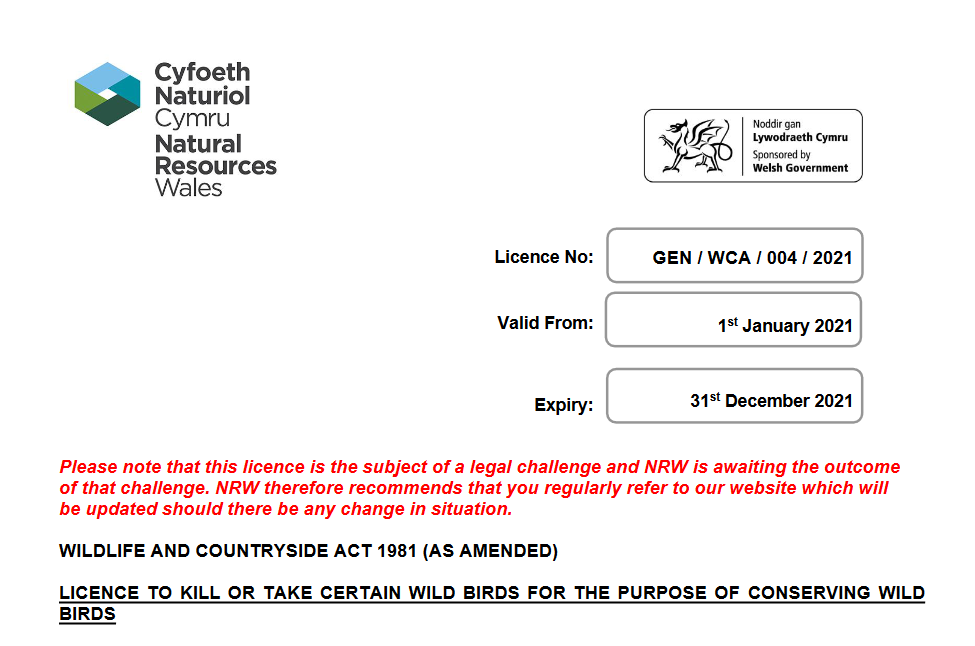 If driving licences or TV licences were written with such lack of clarity then there would be uproar. We think there should be uproar over the casual licensing of the casual killing of birds in Wales. Wild Justice believes that NRW is not doing its job properly and that whether or not its current licences are unlawful (we think they are) they are such awful licences that NRW should be upgrading them as a matter of urgency.