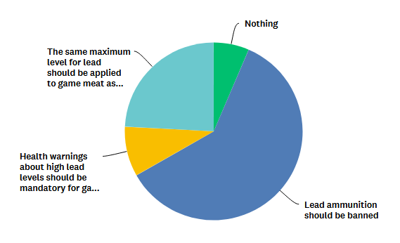 Ban Pb ammunition, 60%; Apply same ML as for non-game meat, 24%; Mandatory health warnings, 9%